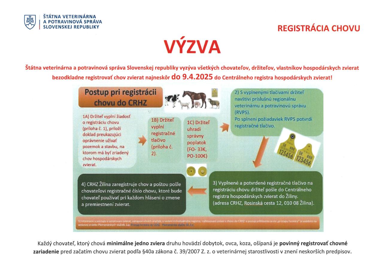 Postup pri registrácií chovu do CRHZ.