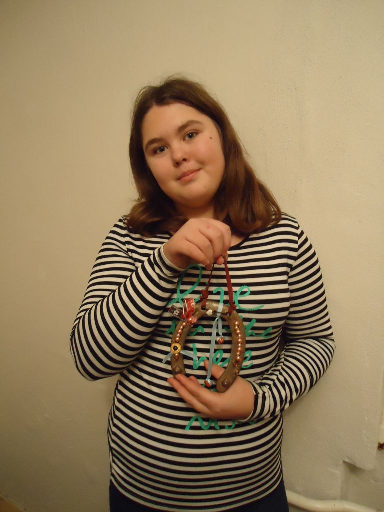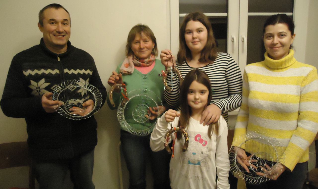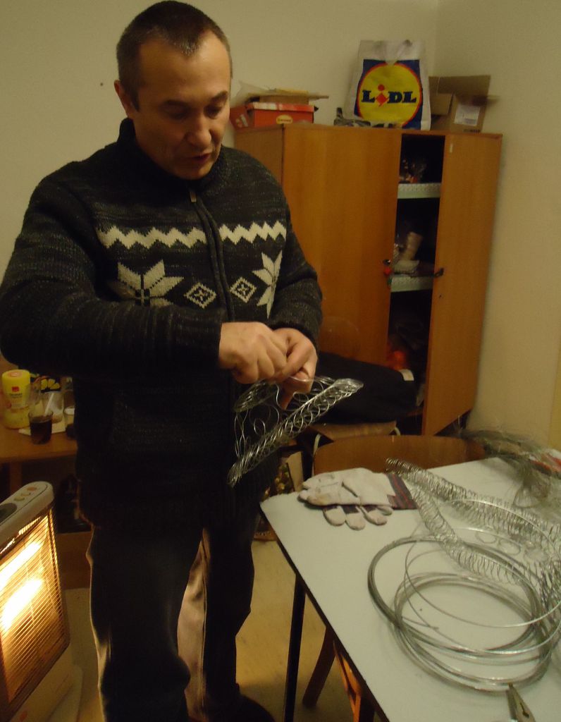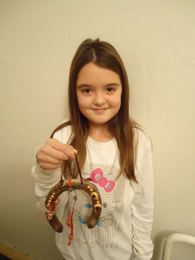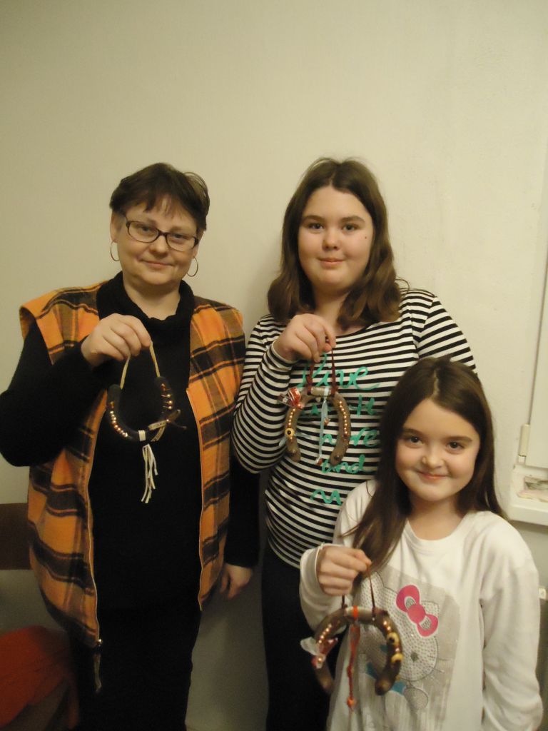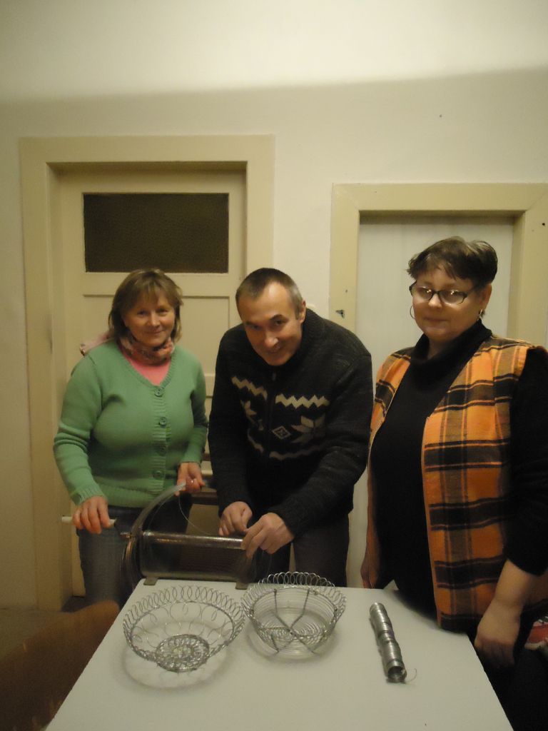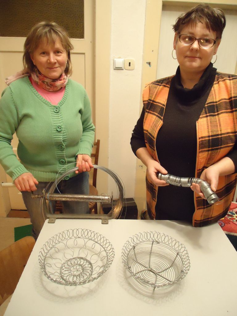 Acéldrótból kosarat készítettünk. A fiatalok Németh Anna vezetésével szerencsepatkót díszítettek.