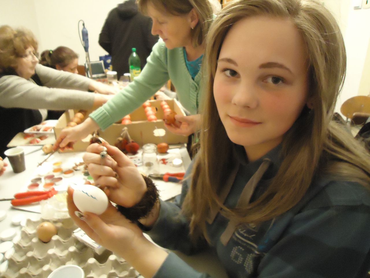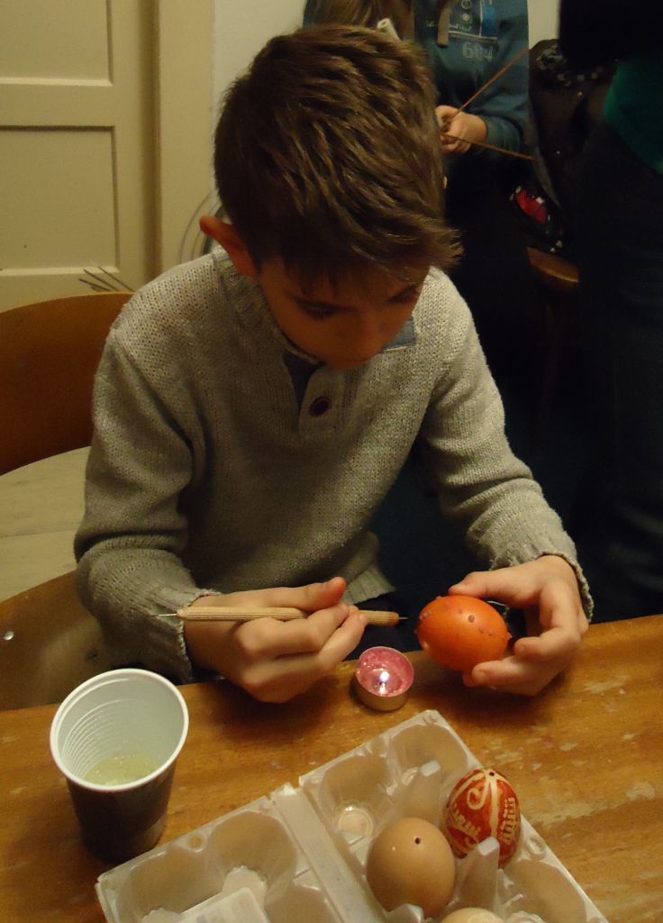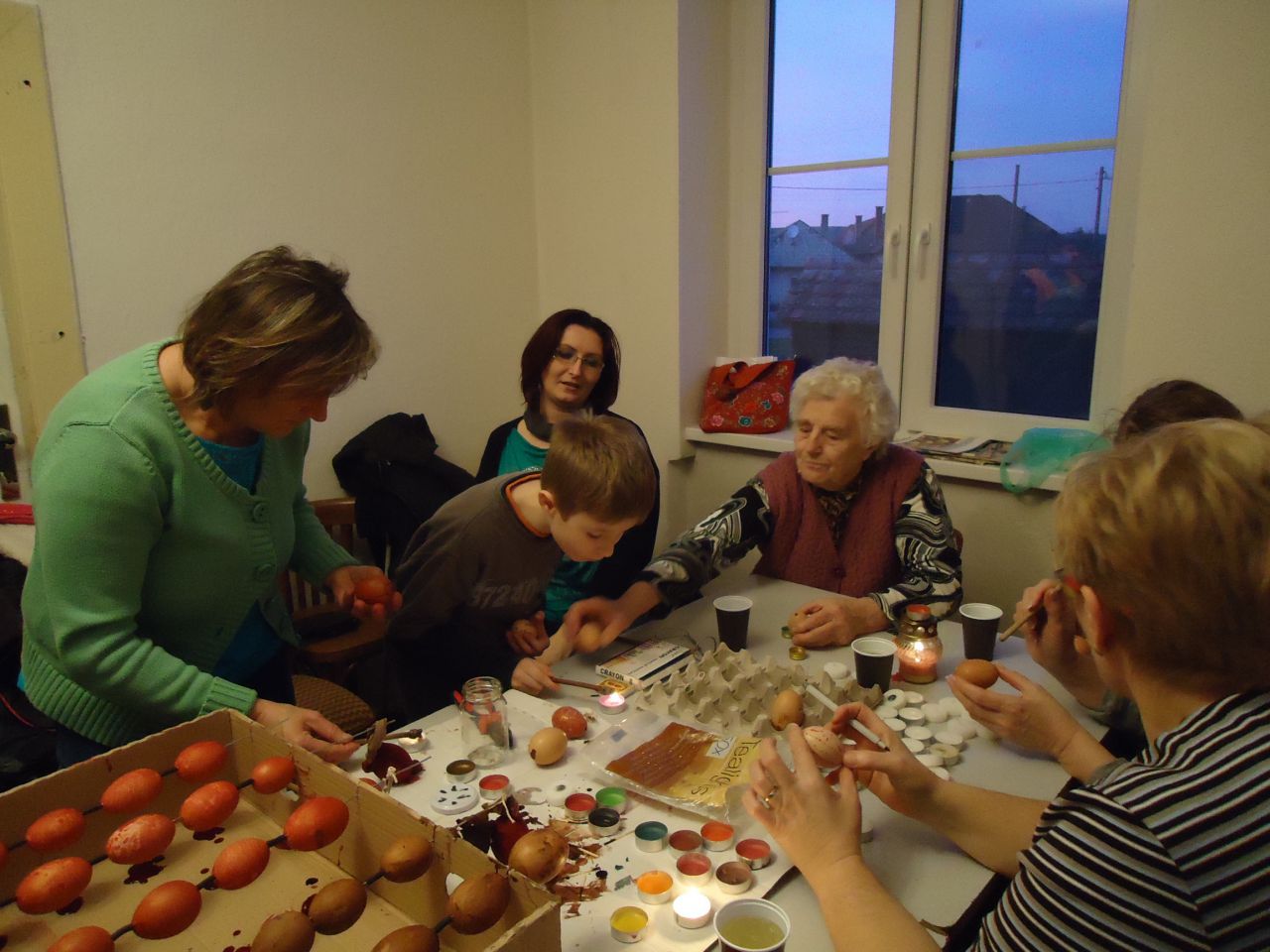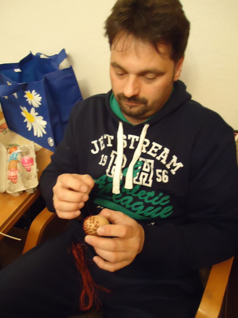 Március 19-én. A húsvéti tojást több féle módon díszítettük. Viaszolással, karcolással, berzseléssel,drótozással és gömöri stílussal.
