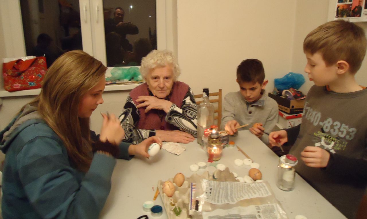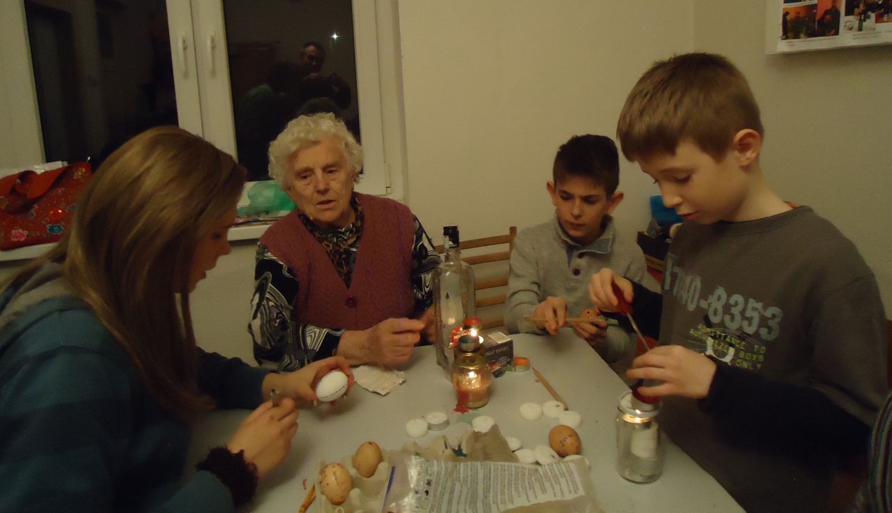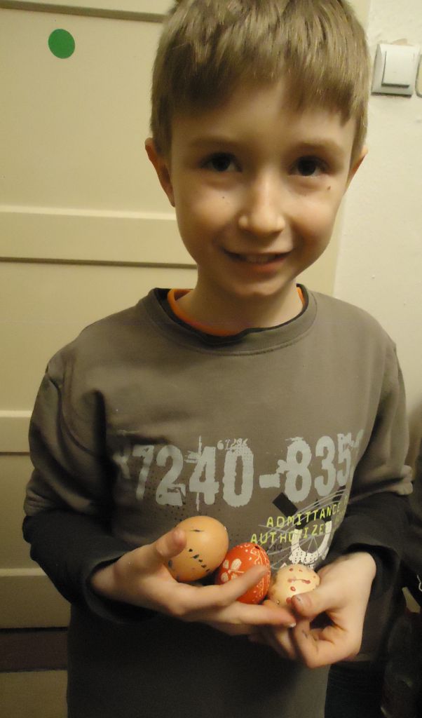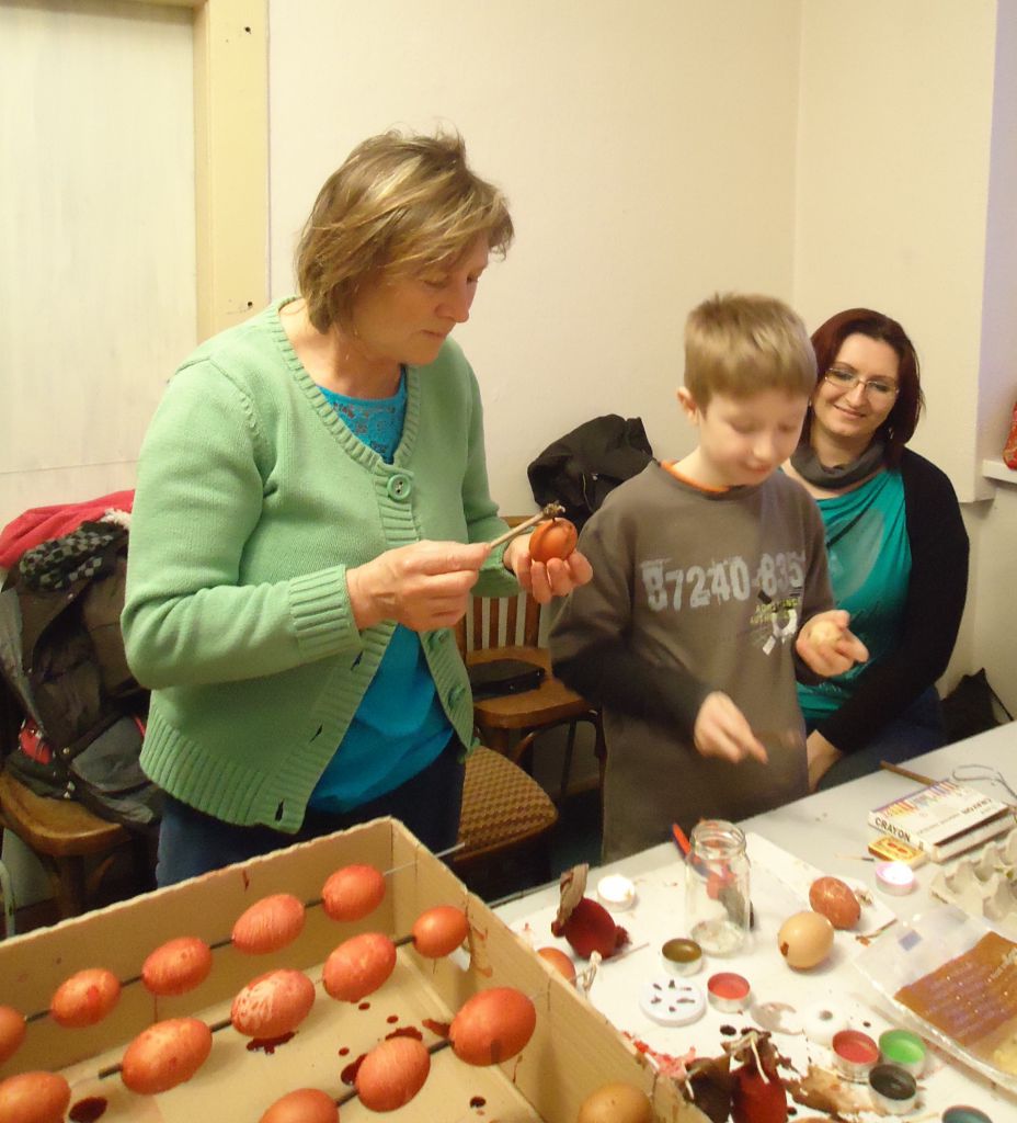 Március 19-én. A húsvéti tojást több féle módon díszítettük. Viaszolással, karcolással, berzseléssel,drótozással és gömöri stílussal.