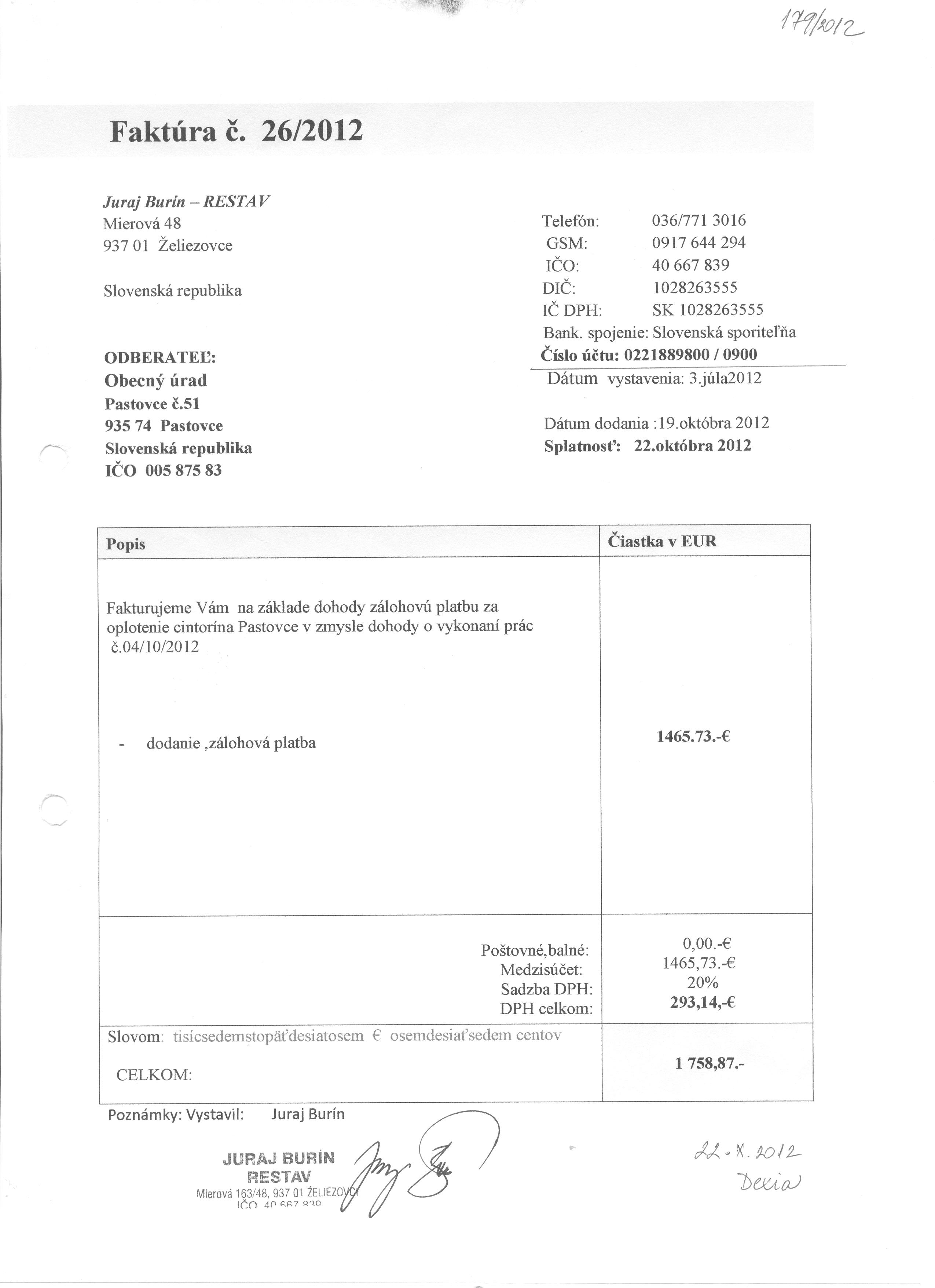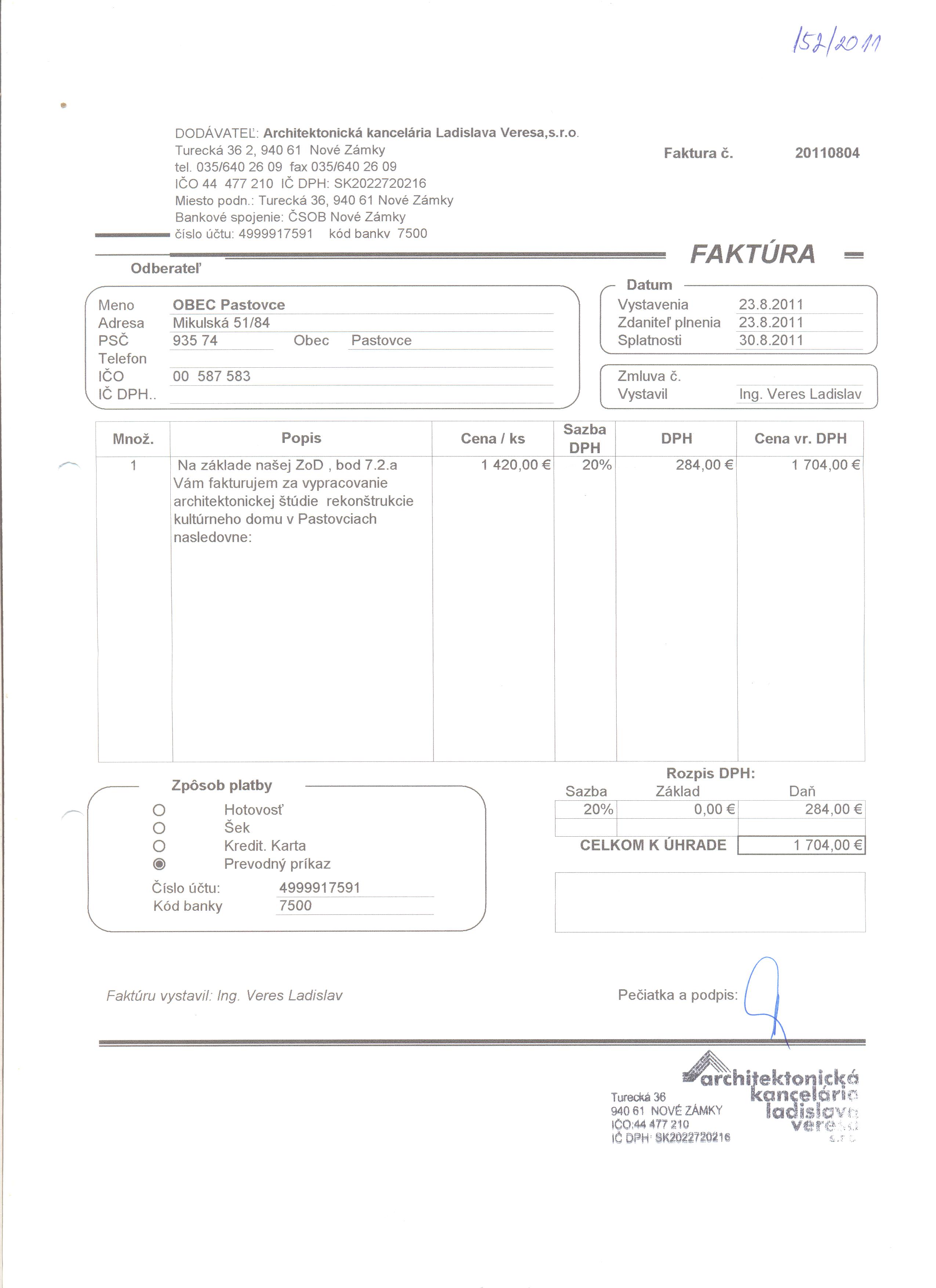 pastovce - zmluva o dielo obce 2014 jeden projekt-web